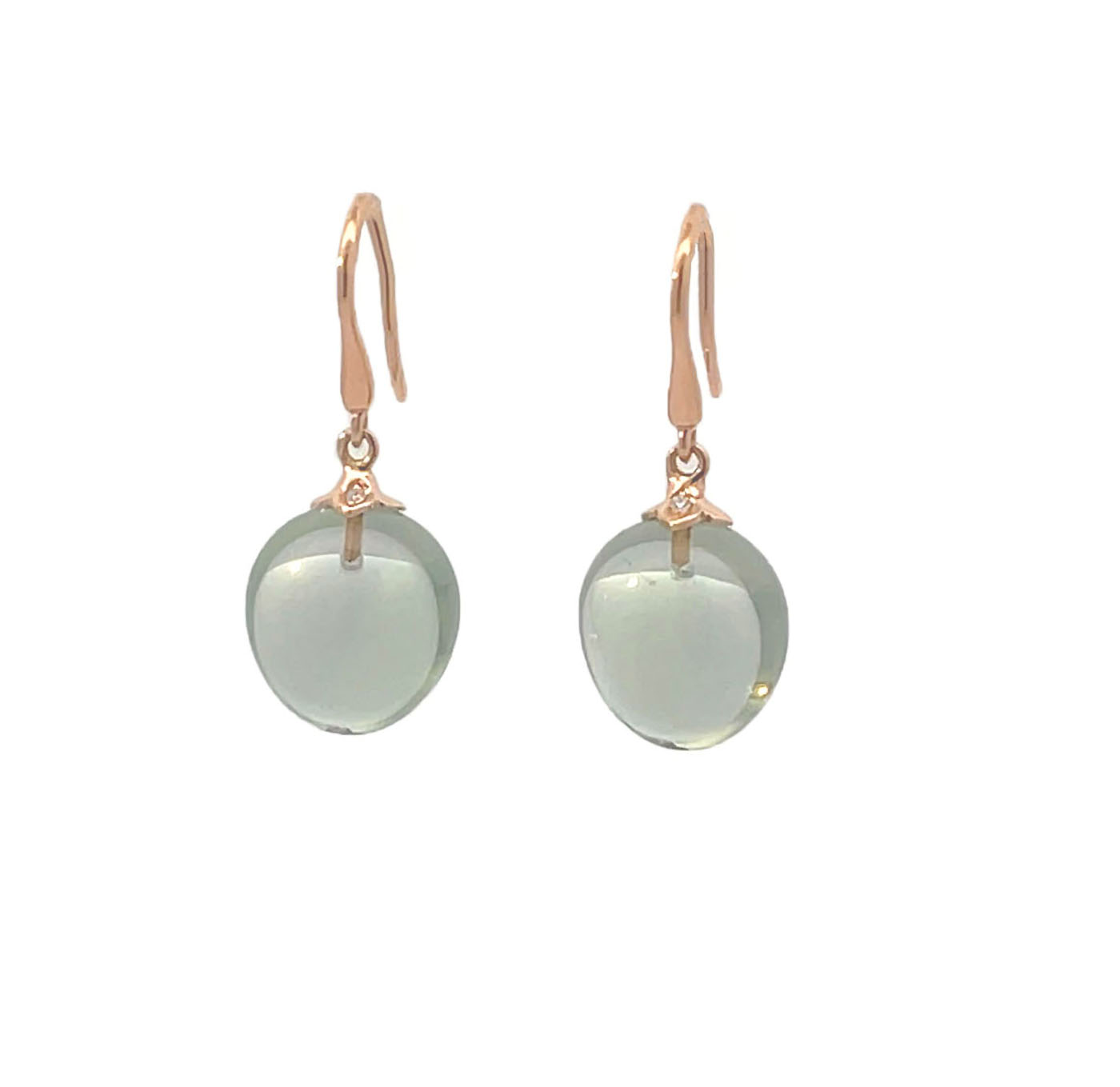Ohrschmuck aus 750er Roségold mit Amethyst grün (zusammen 15,8 ct) und Brillanten (zusammen 0,010 ct Hvsi).