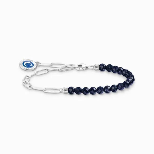 Charm-Carrier: Eine spannende Optik entsteht durch die Kombination eines Gliederarmbands aus recyceltem Silber mit einem Beads-Armband aus imitiertem, dunkelblauem Sandstein. Die Endkappen sind mit Gravurlinien aufwendig gestaltet. Eine runde THOMAS SABO Charm Club Coin befindet sich am Ende und ist mit dunkelblauer Kaltemaille von Hand bemalt. Du kannst zwischen unterschiedlichen Längen wählen und das Charm-Armband mit verschiedenen Charm-Anhängern kombinieren.