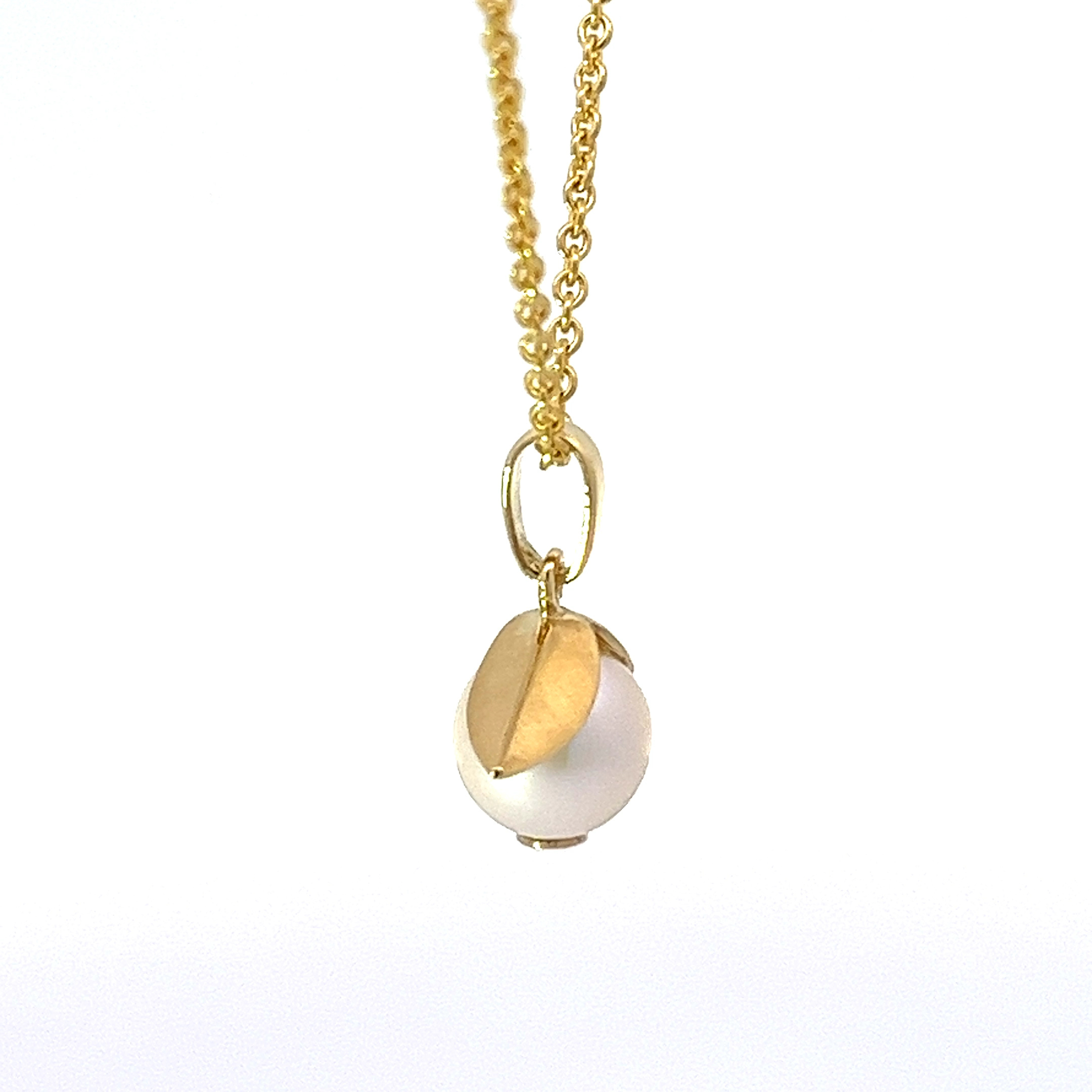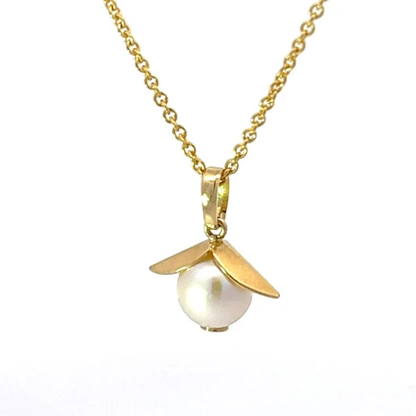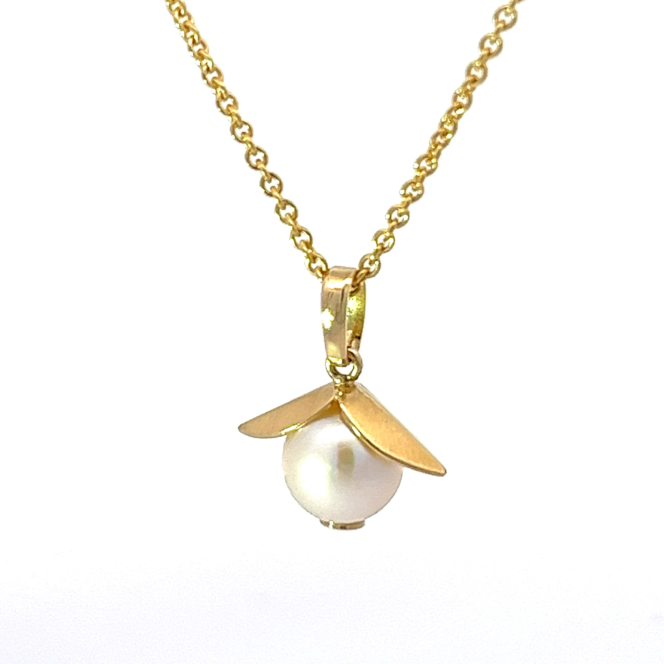 Anhänger aus 750er Gelbgold mit Süßwasserzuchtperle 8 mm. Empfohlen wir eine 750er Gelbgoldkette mit 42cm oder 45 cm Länge.
