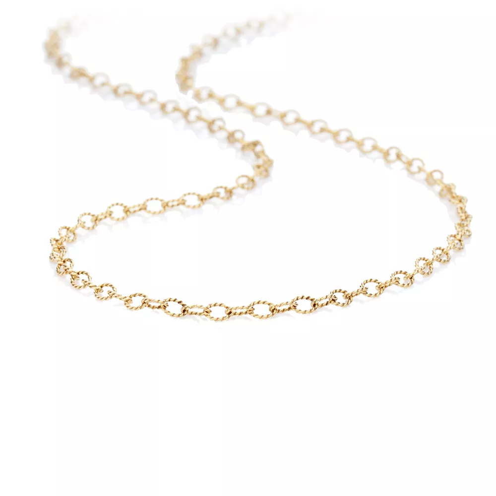 Aus fein kordiertem Draht gefertigtes Collierkettchen in 750er Gelbgold, passend für Anhänger von Brigitte Adolph, Länge 70 cm, mit Karabiner.