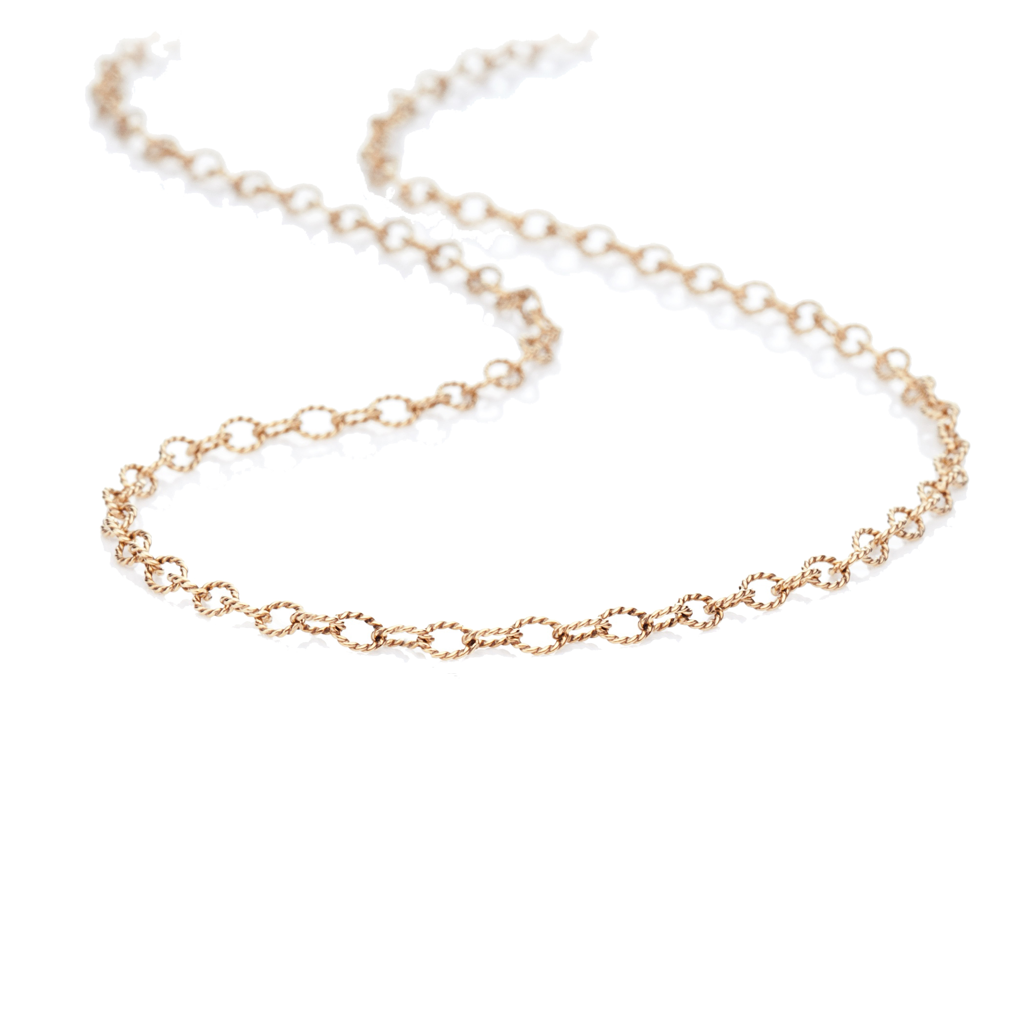 Aus fein kordiertem Draht gefertigtes Collierkettchen in 750er Roségold, passend für Anhänger von Brigitte Adolph, Länge 42 cm, mit Karabiner.
