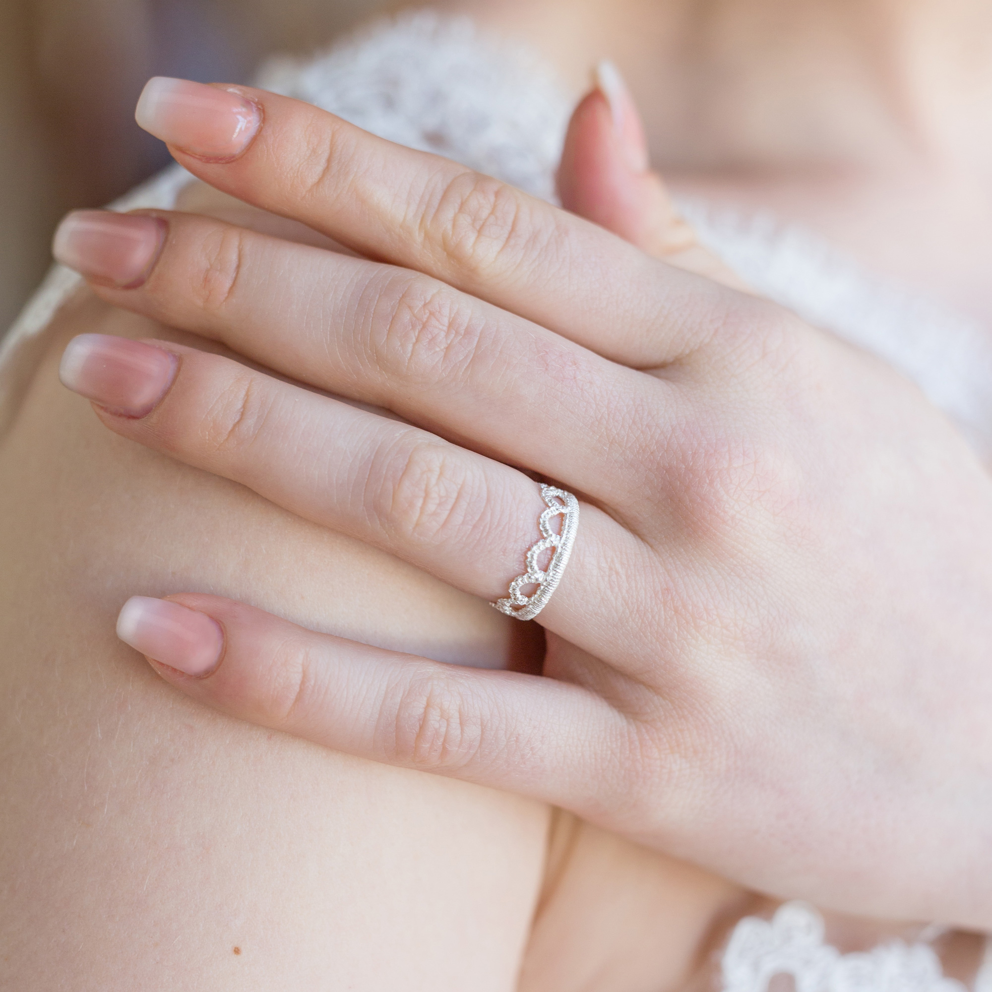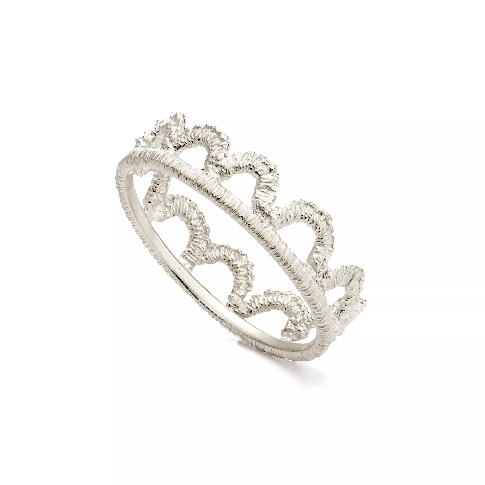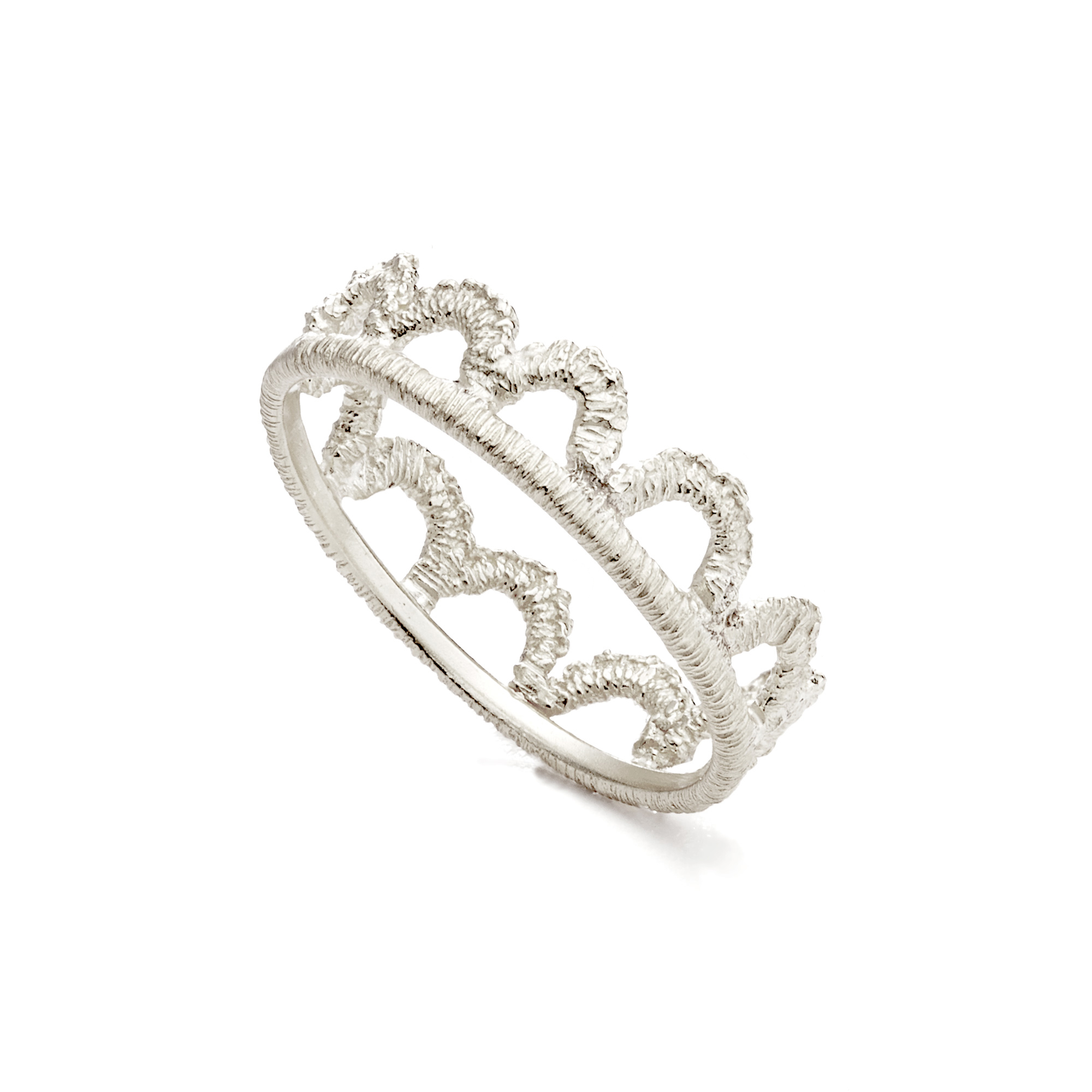 Der Ring Anna besticht durch seinen filigranen Cut-Out-Look. Namensgeberin Anne Boleyn ist die bekannteste der sechs Frauen König Heinrichs VIII. von England und wurde als seine Favoritin später auch Königin. Ihre faszinierende Persönlichkeit diente als historische Vorlage für die Oper Anna Bolena und für die Schmuckkreationen Anna von Brigitte Adolph. Auf einem Gemälde entdeckte die Designerin den Ziersaum, der Annes Robe schmückt: Feine Bögen mit einer kleinen Schlinge. In Tropfenform zu Ohrhängern, Anhänger und Ring geformt, lassen sie ihre Trägerin geradezu königlich strahlen. Die Breite des Rings beträgt 6 mm.
