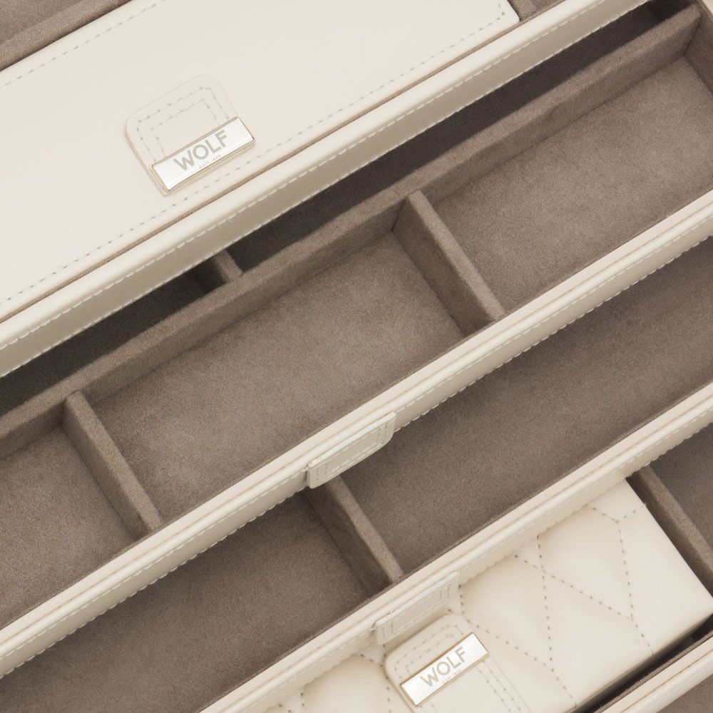 Diese Schmuckbox ist nicht nur ein praktisches Aufbewahrungsmittel, sondern auch eine Investition in die Pflege und Präsentation Ihrer Schätze, die über Generationen hinweg Bestand haben wird. Mit einer weltweiten Garantie von zwei Jahren bietet WOLF zusätzliche Sicherheit und Vertrauen in die Qualität und Langlebigkeit dieses exquisiten Stückes: