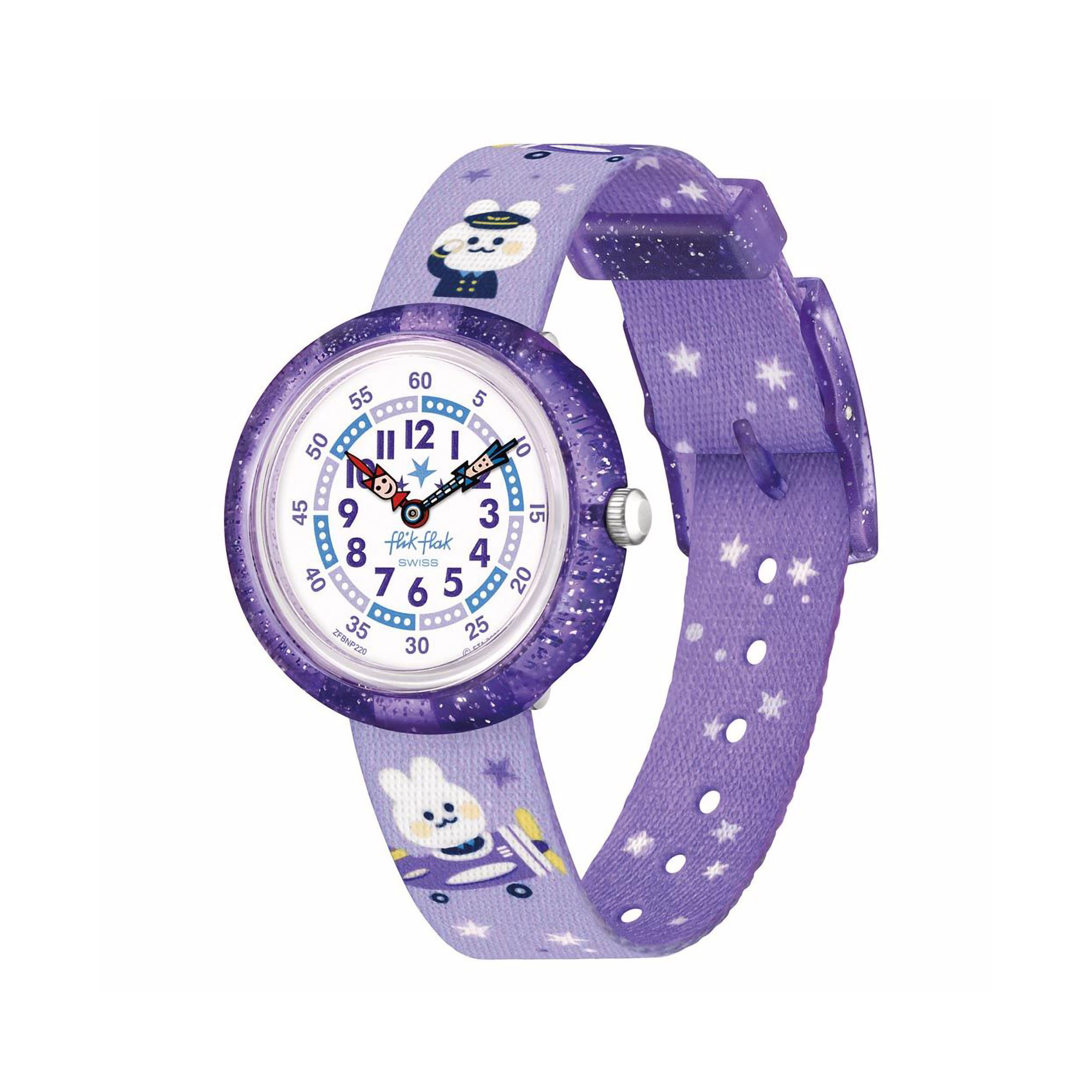 Zeit zum Abheben! Unsere violette Kinderuhr mit niedlichen Häschen-Piloten ist ein lehrreiches Geschenk, mit dem du die Lüfte erobern kannst.