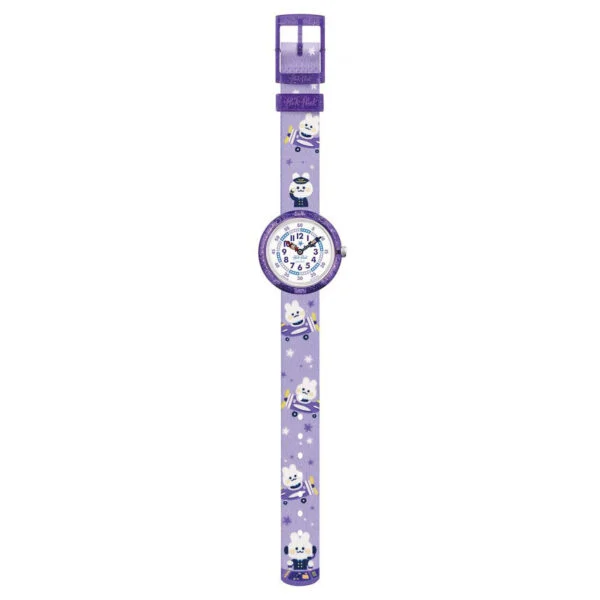 Diese Mädchenarmbanduhr zeichnet sich durch ein Quarzuhrwerk mit Batterie und ein lebhaftes lila Design aus. Das Gehäuse ist aus umweltfreundlichem, biobasiertem Kunststoff gefertigt und das Zifferblatt kombiniert lila mit weißen Akzenten für eine klare Sichtbarkeit. Das bunte Armband aus recyceltem PET-Textil schließt mit einer Dornschließe. Mit einem Durchmesser von 32 mm und einer Höhe von 9,25 mm ist die Uhr bis zu einer Wasserdichtigkeit von 3 bar ausgelegt, was sie für alltägliche Wasserspiele geeignet macht.