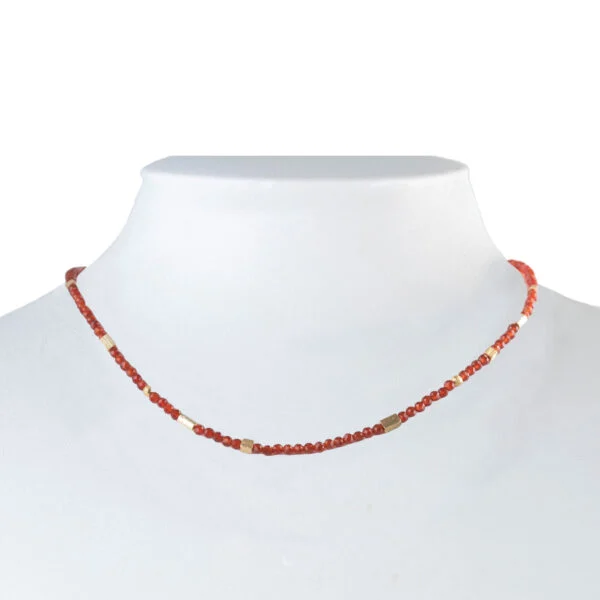 Mit einem Durchmesser von 3 mm sind die Achate perfekt proportioniert, um eine harmonische und ansprechende Ästhetik zu gewährleisten. Dieses Collier ist nicht nur ein modisches Statement, sondern auch ein Ausdruck feinster Handwerkskunst. Es ist ideal für alle, die ihrem Outfit einen Kühnen und stilvollen Farbtupfer hinzufügen möchten.