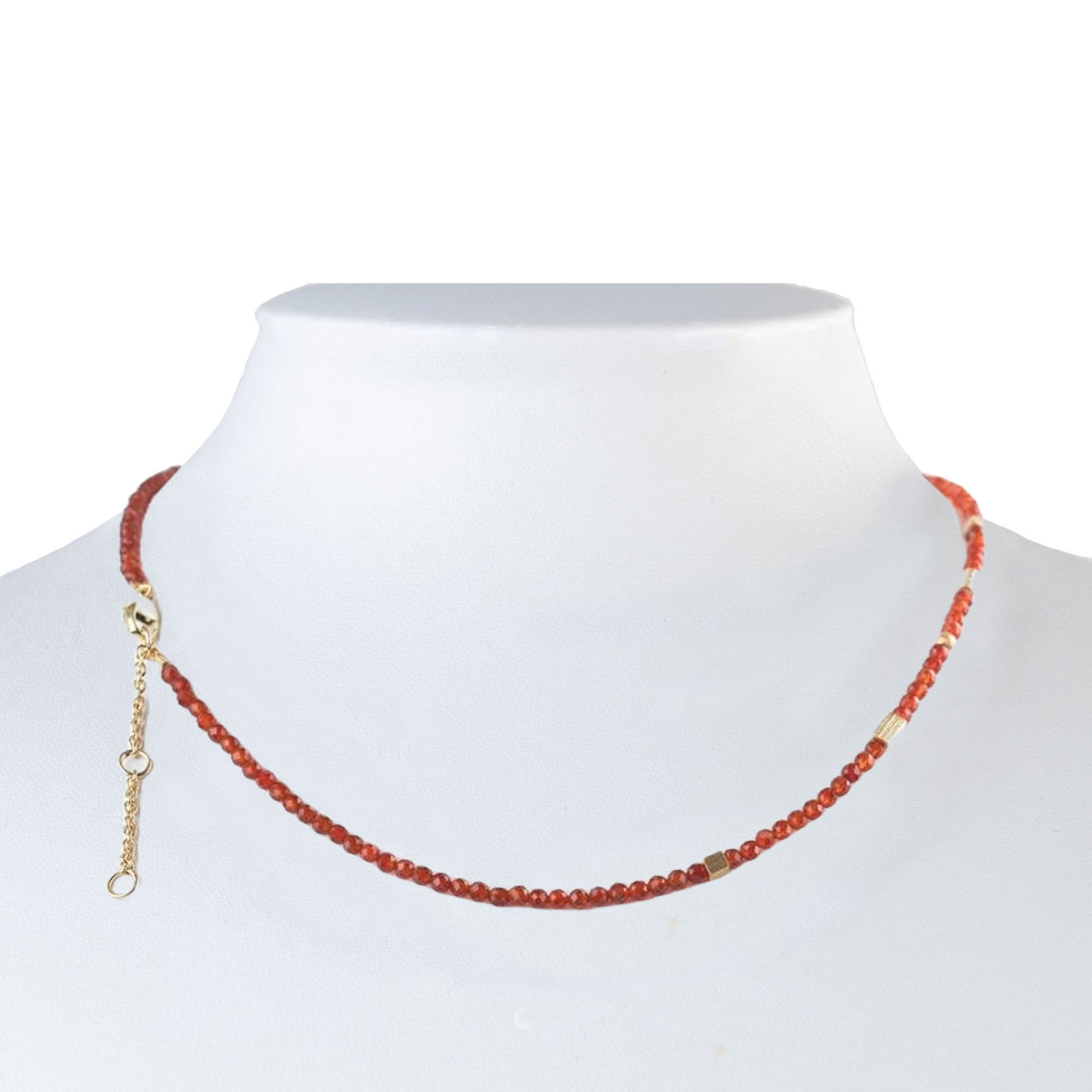 Lassen Sie sich von der lebendigen Schönheit des Rohm Colliers verzaubern, kunstvoll gestaltet aus leuchtend rotem, facettiertem Achat. Dieses exquisite Schmuckstück fängt das Licht auf spektakuläre Weise ein und reflektiert es mit jeder Bewegung, wodurch ein funkelndes Feuerwerk beim Eindrücken entsteht. Eingebettet in sanft satiniertes 925er Silber, bietet dieses einreihige Collier eine elegante Grundlänge von 42 cm, die durch eine zusätzliche Verlängerung von 5 cm individuell angepasst werden kann.