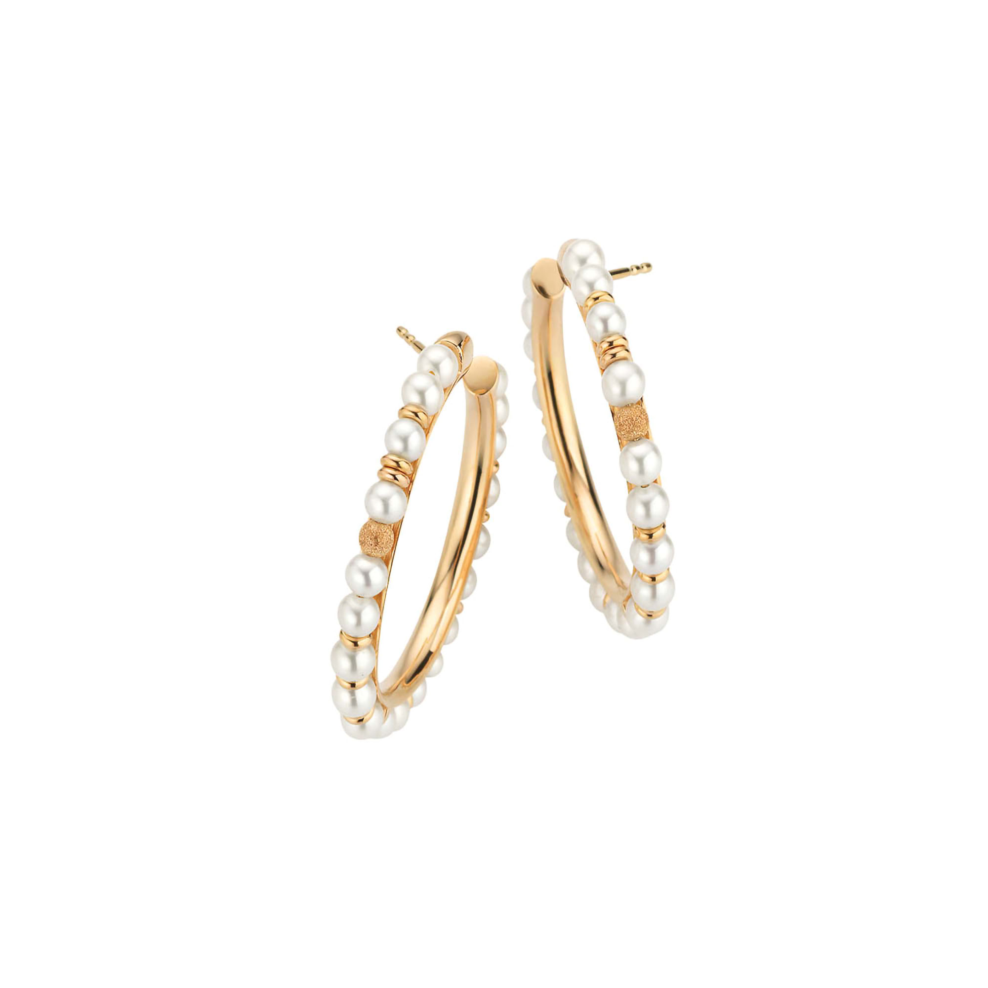 Setzen Sie ein stilvolles Statement mit diesen ausdrucksstarken Creolen, die klassische Perlen neu interpretieren. Ein Must-have für alle, die das Außergewöhnliche schätzen und dabei auf Qualität, Eleganz und modischen Esprit nicht verzichten möchten.