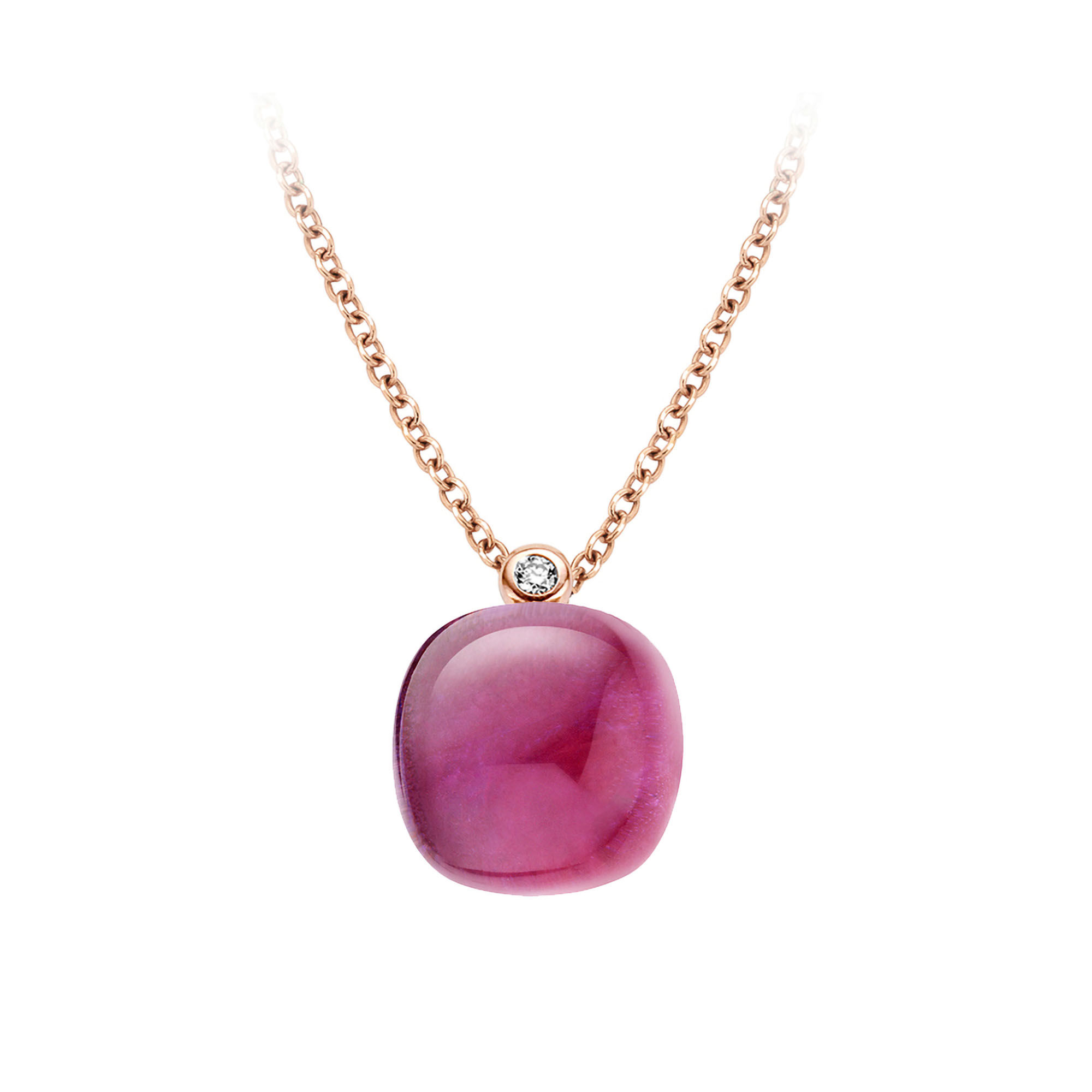 Dieser Mini Sweety Anhänger ist aus 750er Roségold gefertigt und mit Amethyst, Rubi, Perlmutt und unserem 0,010ct Signature-Diamanten besetzt. Die reizvollen Cabochons, die in 50 außergewöhnlichen Farbtönen erhältlich sind, sind definitiv das herausragendste Merkmal von BIGLI. Die Kollektion wurde mit einer ausgeklügelten Schichttechnik geschaffen, bei der mehrere Steinschichten miteinander kombiniert werden, um jedes Mal neue Farben und unterschiedliche Schattierungen und Intensitäten zu erzeugen.