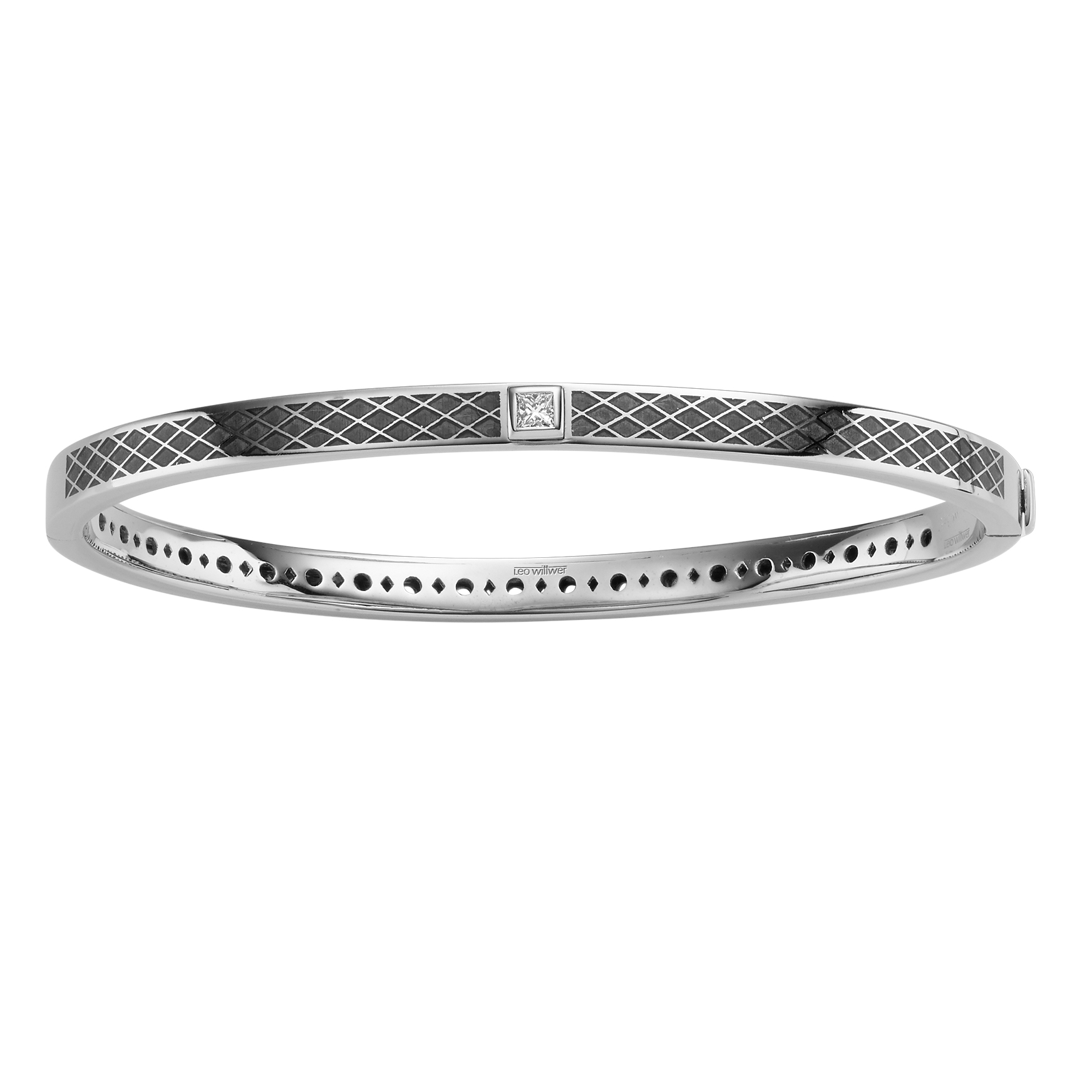 Graues Kaltemaille kombiniert mit kühlem Weißgold wirkt edel und elegant mit dem eingearbeitet markanten Prinzess Cut Diamant