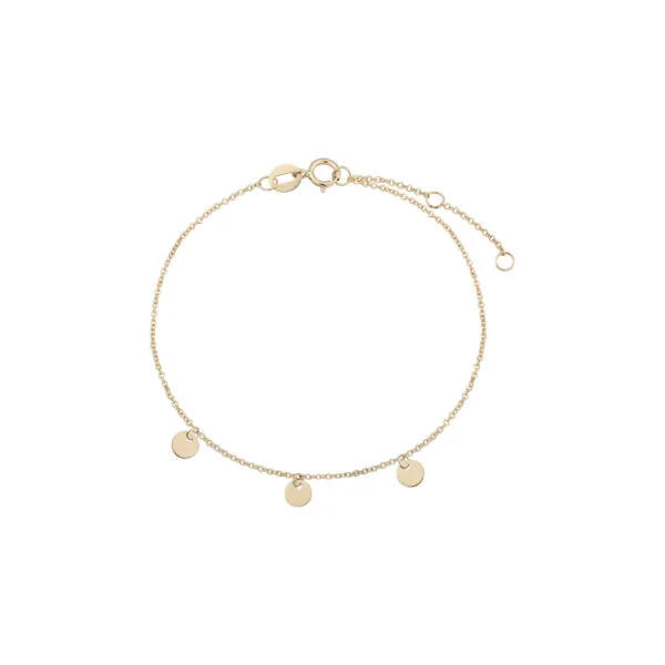 Arm Candy! Dieses wunderschöne Armband aus 14-karätigem Gelbgold schmiegt sich zart um dein Handgelenkt und wird geschmückt von runden Plättchen, die bei jeder Bewegung mitschwingen. Das Schmuckstück verleiht deinem Everyday-Look eine Portion Glamour.