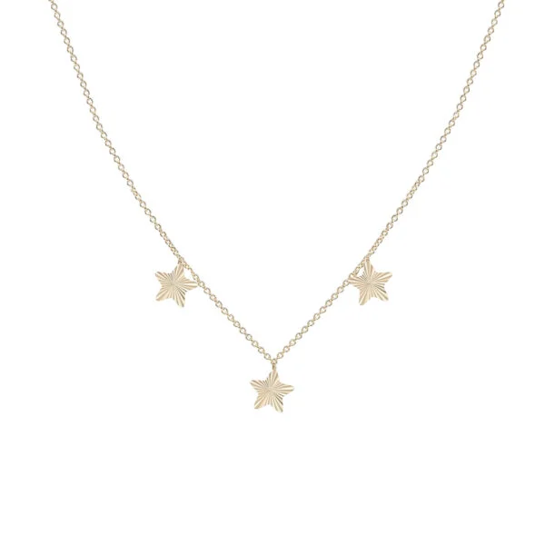 Dieses Trend-Piece aus 14-karätigem Gelbgold verleiht jedem Look das gewisse Etwas. Die elegante Halskette zeigt drei Sterne, welche von der Kette baumeln und dein Dekolleté zum Strahlen bringen.