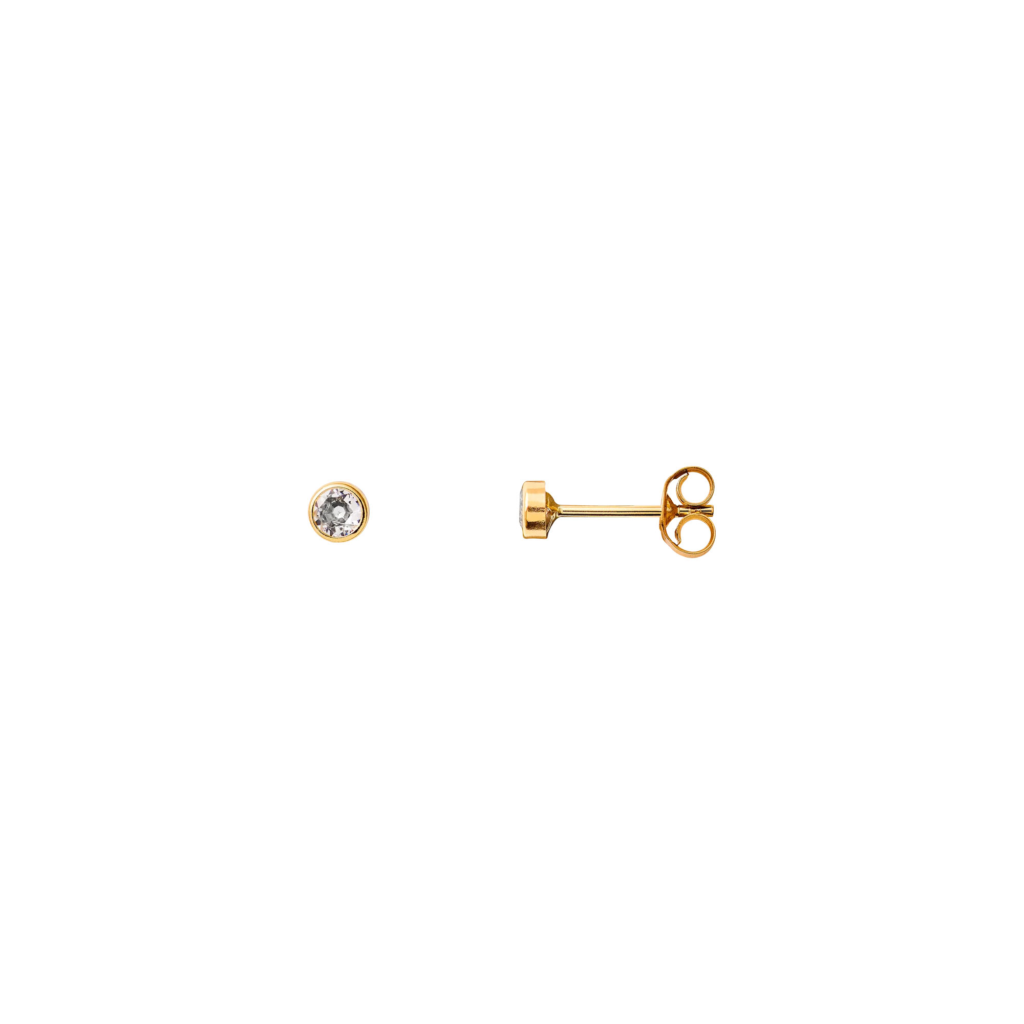 So simpel, dass sie schon wieder einzigartig sind. Die einfachen Ohrstecker aus 14-karätigem Gelbgold mit Zirkonia-Stein wirken auf den ersten Blick bescheiden, doch unterstreichen die Schönheit ihrer TrägerInnen.