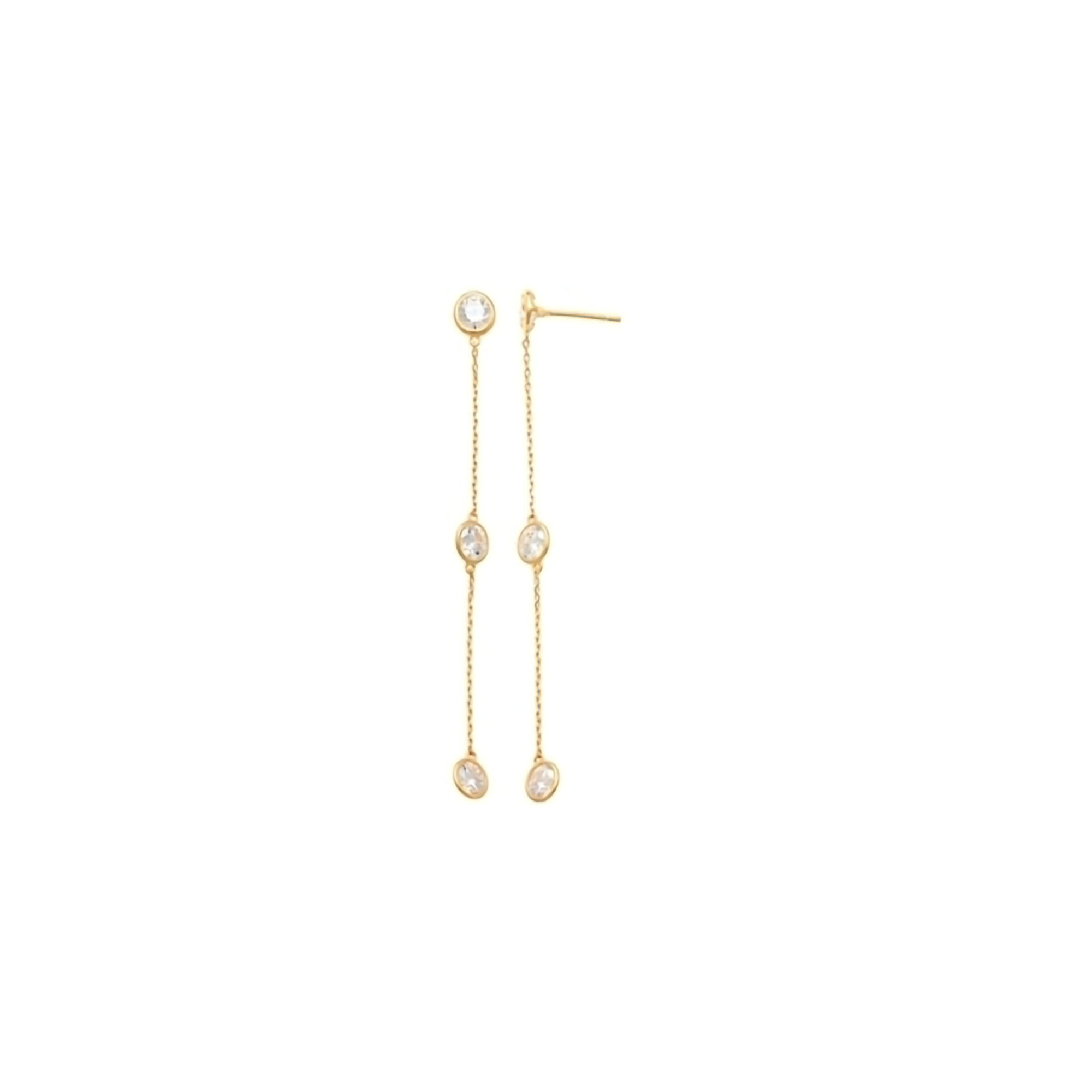 Die FINE Trio Ohrringe aus 14 Karat Gelbgold sind eine atemberaubende Darstellung von Eleganz und Stil. Diese langen Ohrringe sind mit drei runden Zirkonia-Steinen versehen, die in einem Abstand von ein paar Zentimetern hängen und einen charmanten, verspielten Effekt erzeugen. Gefertigt aus hochwertigem 14 Karat Gelbgold strahlen die FINE Trio Ohrringe eine warme und luxuriöse Eleganz aus. Ihr Design verleiht jedem Look eine moderne und dennoch zeitlose Note, perfekt geeignet für besondere Anlässe, wo sie durch ihr Funkeln und ihre Beweglichkeit beeindrucken. Die präzise Verarbeitung und das edle Material machen diese Ohrringe zu einem Statement der Exklusivität und Raffinesse. Sie sind nicht nur ein Schmuckstück, sondern auch ein Ausdruck deines individuellen Stils und deiner Wertschätzung für feinste Handwerkskunst.