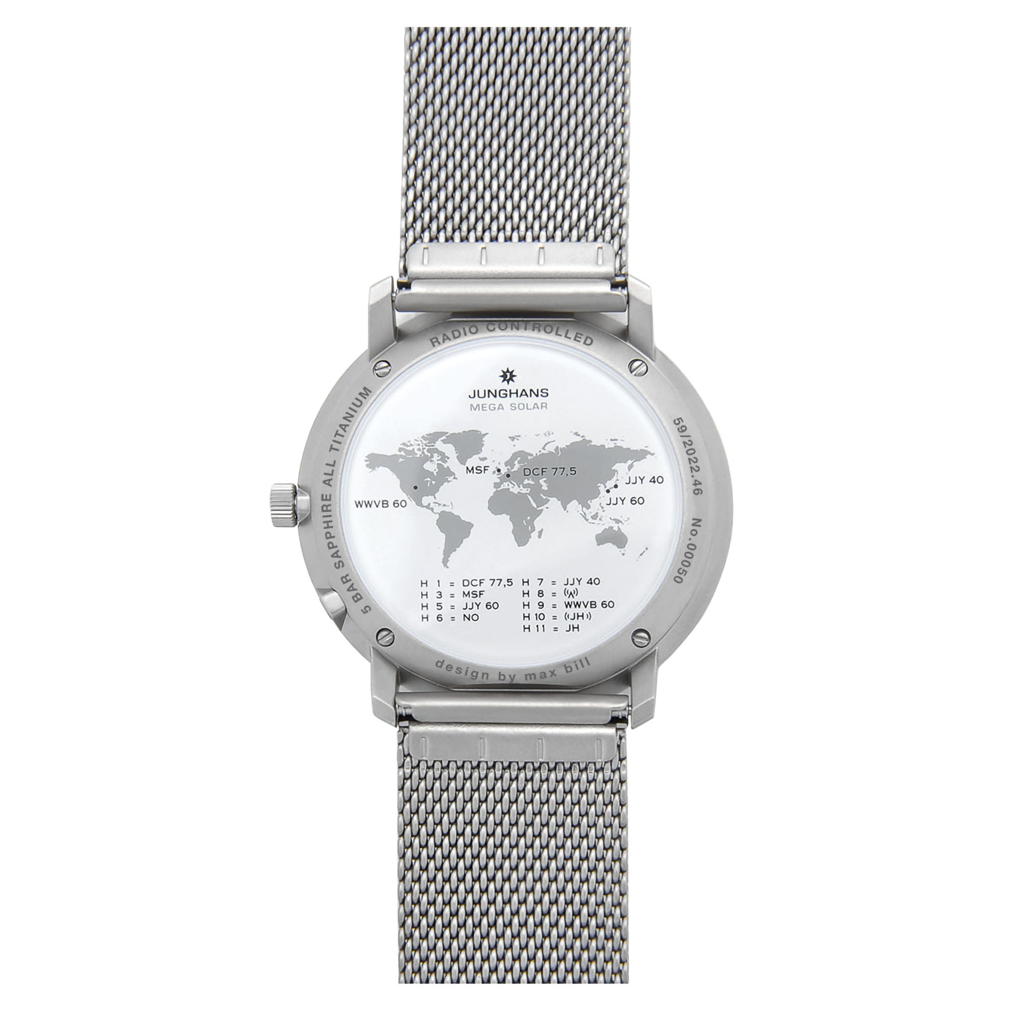 max bill MEGA Solar – Ihr minimalistisches Design bleibt immer modern, ihre Energie schöpft sie aus der Sonne. Dank des Materials Titan erlebt man die Uhr als verblüffend leicht und besonders hautfreundlich. Weiteren Komfort bieten das hochmoderne Funkwerk, ein ewiger Kalender und die einfache Einstellung der Zeitzonen per Krone oder in wenigen Sekunden mit dem Junghans eigenen Zeitsignal der Junghans MEGA App. Auch das Design der max bill MEGA Solar steht ganz im Zeichen der Nachhaltigkeit: Die Bauhaus-typische minimalistische Formensprache bleibt modern – gestern, heute, morgen und übermorgen.