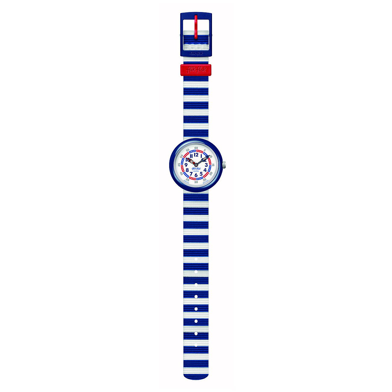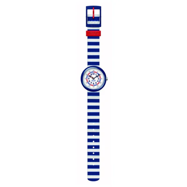 Diese stylishe Kinderuhr im minimalistischen Rot-Weiß-Blau-Look ist das perfekte lehrreiche Geschenk für Kinder, die das Uhrenlesen lernen.