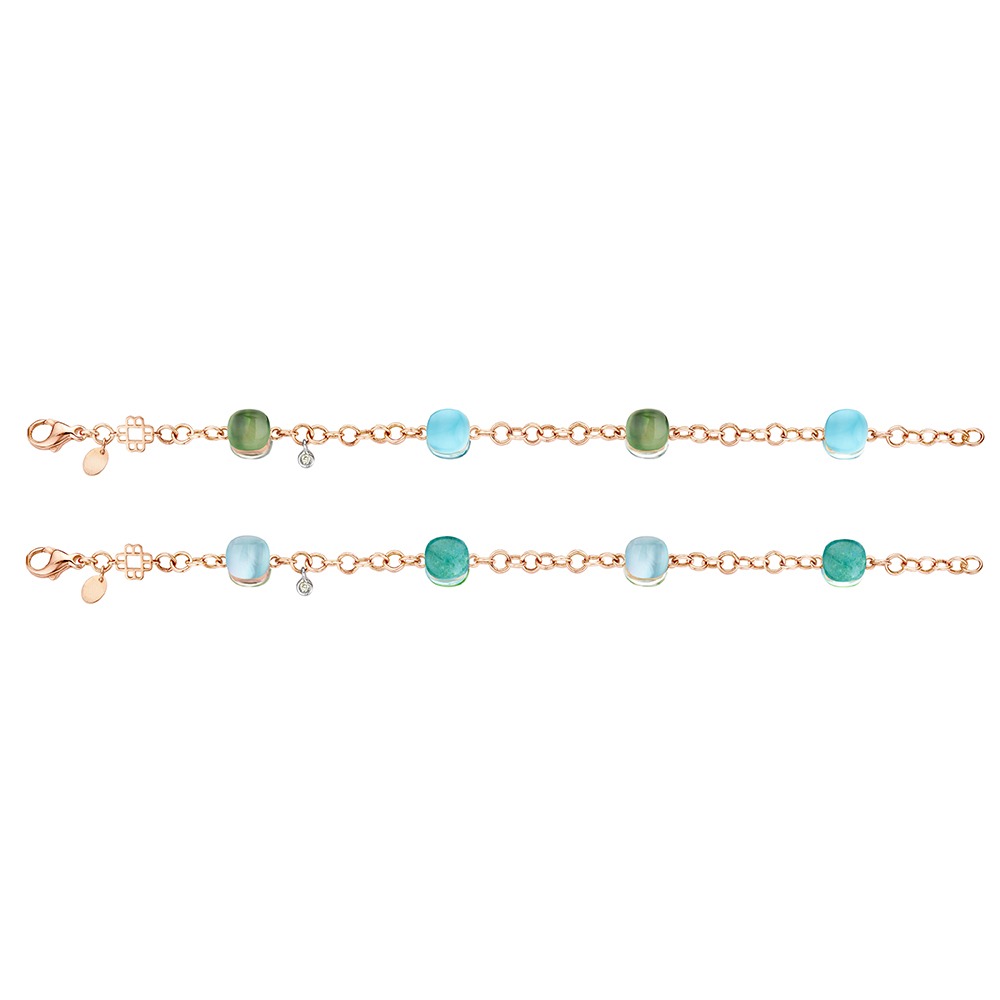 Armband aus Roségold mit Diamanten und Edelsteinkombination in den Farben „Rock Crystal Blues“, „Green Aventurine For Ever“, „Aventurine Mystery“ und „Eclectic Blue“