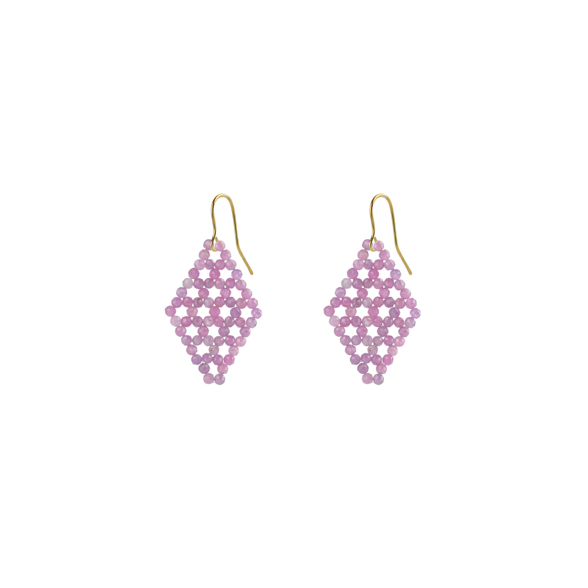 Erleben Sie den zauberhaften Glanz unserer Rohm Ohrenpendler, die mit fein geschliffenen Rubinen in einem lebendigen Rosa besetzt sind. Diese Ohrringe bestechen durch ihre filigrane und geometrische Anordnung, die moderne Eleganz mit klassischem Charme vereint. Jeder Rubin ist sorgfältig in eine zarte, rhombenförmige Struktur eingefasst, die an einem goldenen Haken hängt, was zusätzlich für einen angenehmen Tragekomfort und einen sicheren Halt sorgt.