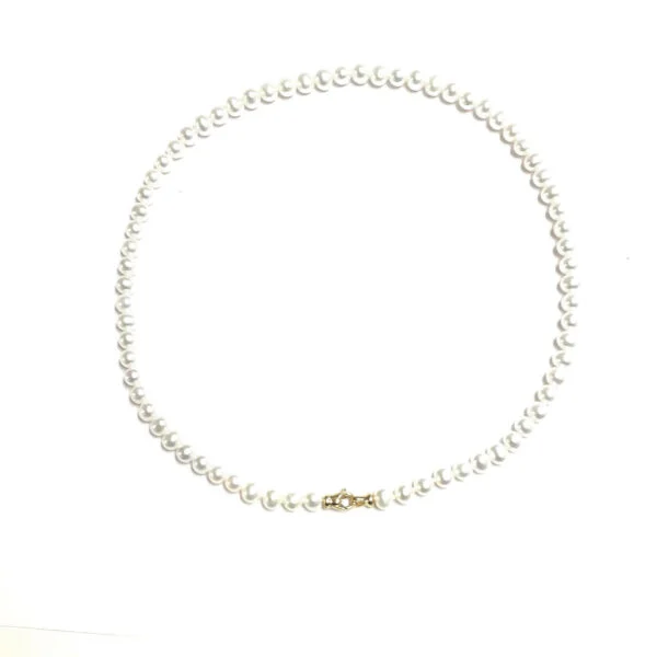 Echte Süßwasser Perlenkette 5,5 – 6 mm, für Frauen. Verschluss in Sterling Silber vergoldet.