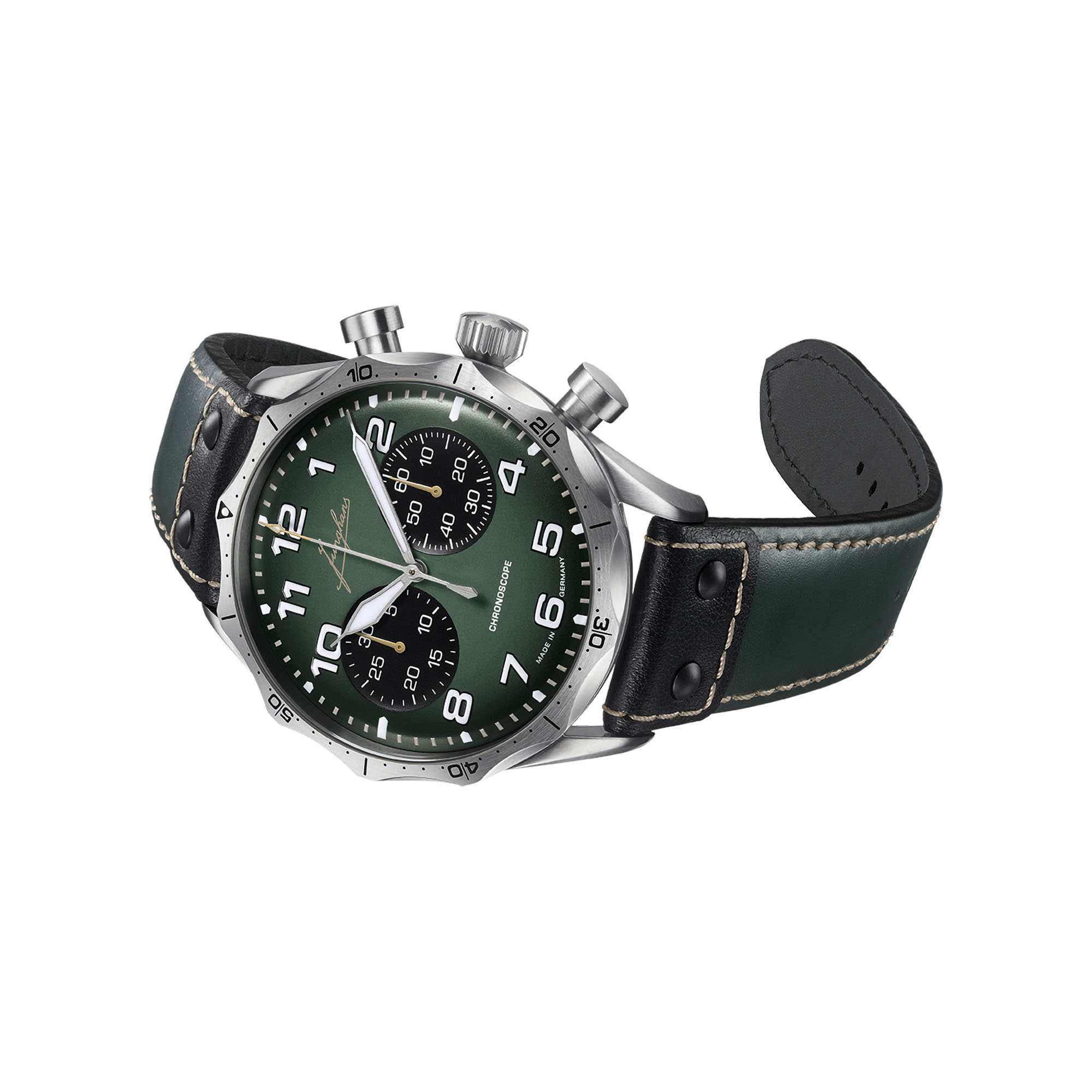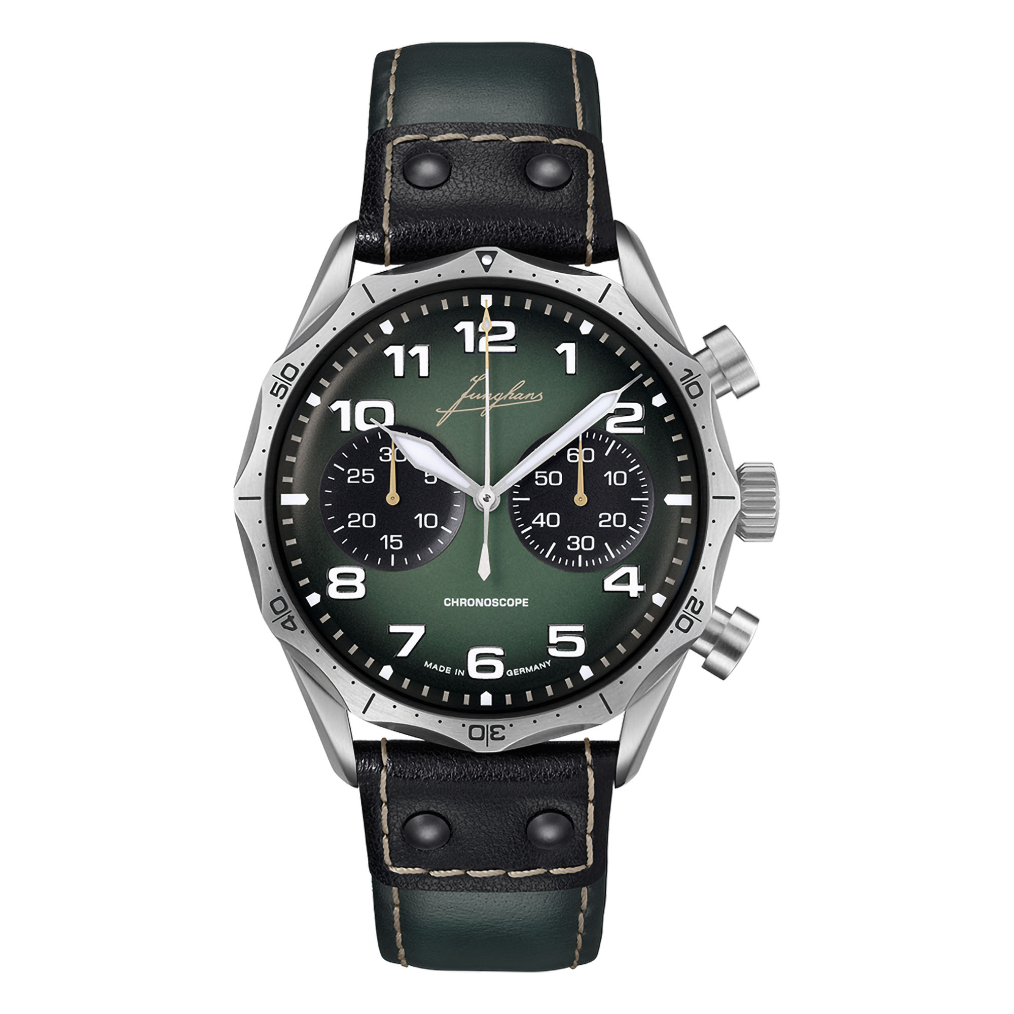 Erleben Sie den Geist der Luftfahrt mit der Junghans Pilot Chronoscope 27/3492.00 – eine Uhr, die Präzision und stilvolles Design in einem bietet. Diese robuste Uhr verfügt über ein 43,3 mm großes Edelstahlgehäuse mit einem markanten, dunkelgrünen Zifferblatt, das unter jeder Bedingung optimale Lesbarkeit garantiert. Ausgestattet mit einem präzisen automatischen Uhrwerk, einer Wasserdichtigkeit bis zu 100 Metern und einem langlebigen Lederarmband, ist diese Uhr perfekt für Abenteuerliebhaber und Stilbewusste gleichermaßen. Tauchen Sie ein in die Welt der Luftfahrtgeschichte und moderne Uhrmacherei – mit der Junghans Pilot Chronoscope. Erobern Sie den Himmel mit Stil!
