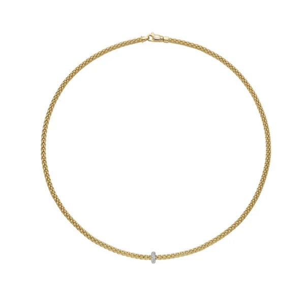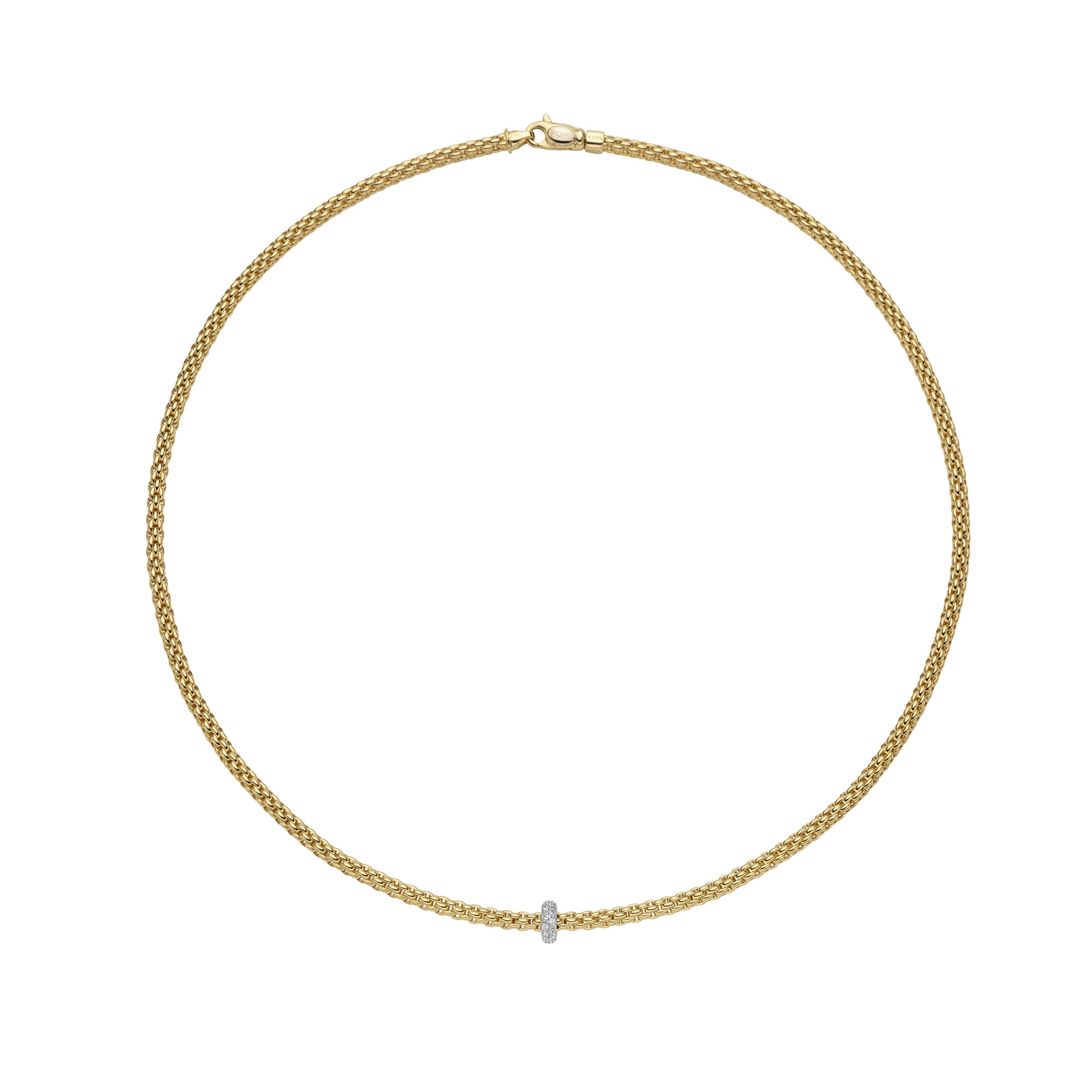 Im Zentrum setzen funkelnde Brillanten mit einem Gesamtgewicht von 0,18 Karat (GVS1) einen dezenten, aber wirkungsvollen Akzent. Ihr feines Lichtspiel unterstreicht die klare Linienführung und verleiht dem Design eine elegante Tiefe, ohne aufdringlich zu wirken. Die hochwertige Karabinerschließe sorgt für Sicherheit und unterstreicht zugleich die exzellente Verarbeitung.