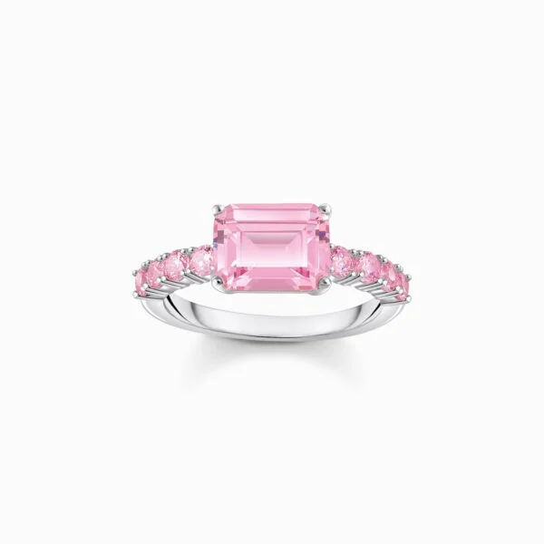 Aus hochwertigem, recyceltem Silber und aufwendig geschliffenen Steinen gefertigt, ist dieser Solitärring perfekt für den großen Auftritt. Das zeitlose Design mit einem strahlenden, pinkfarbenen Zirkonia im Oktagonschliff als Mittelpunkt vereint Eleganz mit einem glamourösen Statement. Rundgeschliffene Zirkonia-Steine in Pink auf der Ringschiene unterstreichen das extravagante Strahlen des Rings.