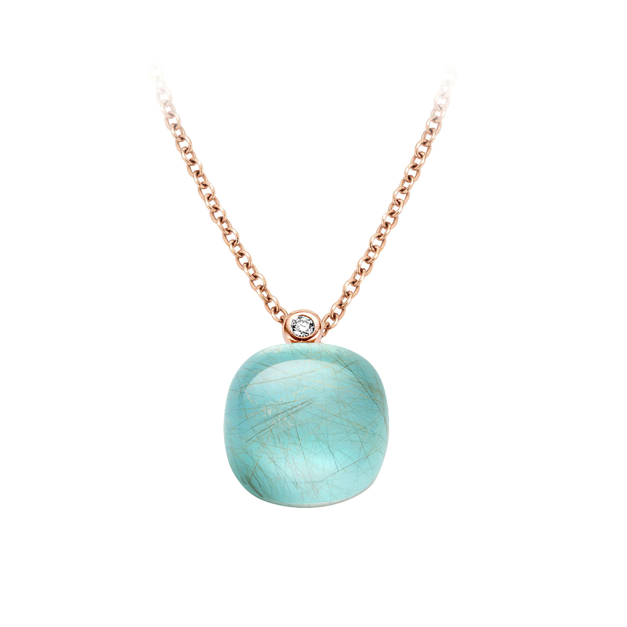 Dieser Mini Sweety Anhänger ist aus 750er Roségold gefertigt und mit Rutilquarz, blauem Achat, Perlmutt und unserem 0,010ct Signature-Diamanten besetzt. Die reizvollen Cabochons, die in 50 außergewöhnlichen Farbtönen erhältlich sind, sind definitiv das herausragendste Merkmal von BIGLI. Die Kollektion wurde mit einer ausgeklügelten Schichttechnik geschaffen, bei der mehrere Steinschichten miteinander kombiniert werden, um jedes Mal neue Farben und unterschiedliche Schattierungen und Intensitäten zu erzeugen.