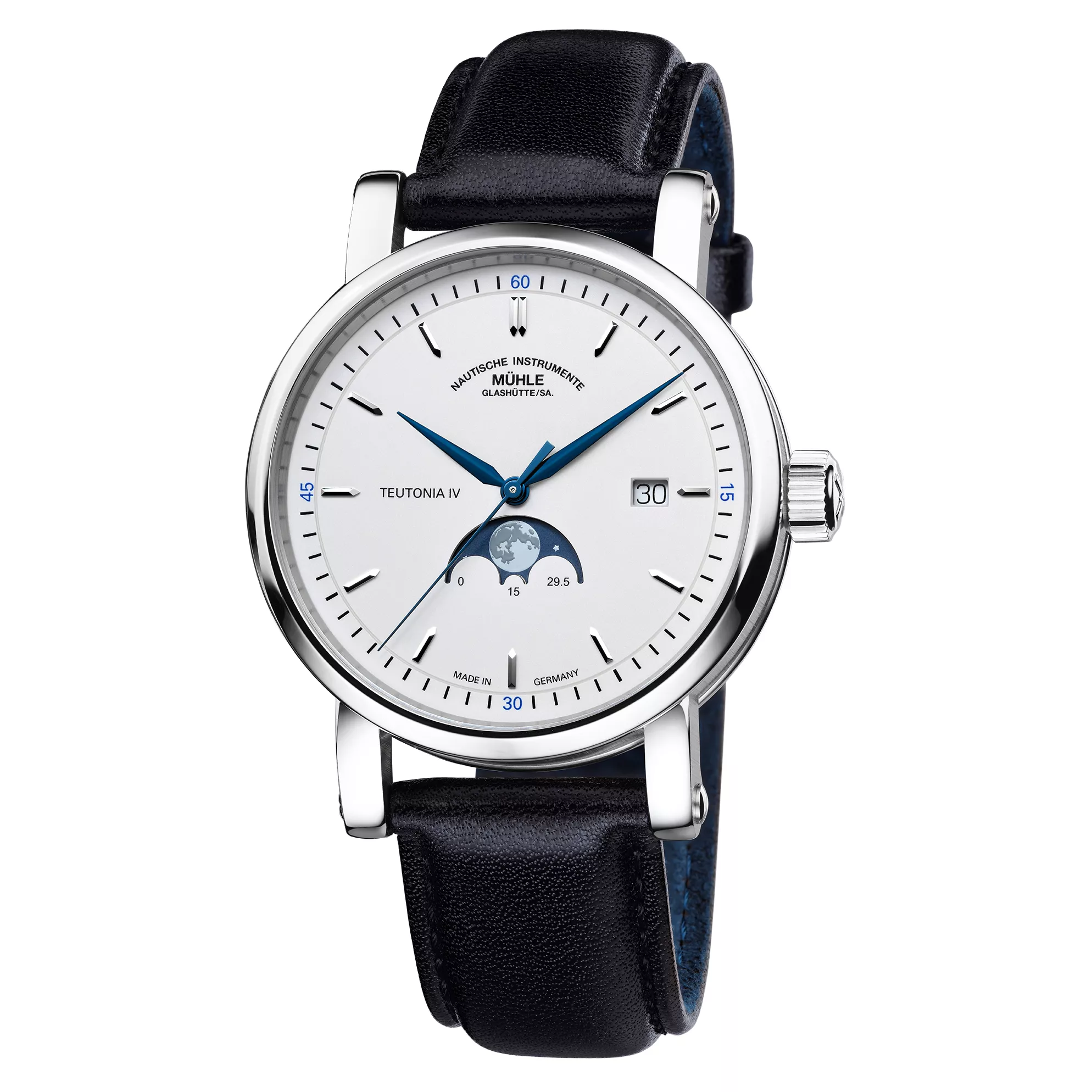 50 Jahre Mondlandung hin oder her: Für alle, die auch bei diesem Thema anders ticken, gibt es noch viel Spannenderes über den Mond zu berichten. Dass er sich in den letzten 50 Jahren fast zwei Meter von der Erde entfernt hat und sich irgendwann ganz von ihr lösen wird, zum Beispiel. Oder dass es eine Teutonia von Mühle-Glashütte gibt, die den Mond in einem Fenster bei sechs Uhr für alle Ewigkeit einfängt. Unter dem speziell geformten Fenster des Zifferblatts dreht sich dazu eine rund zehn Millimeter messenden Mondscheibe in 59 Tagen einmal um sich selbst. Das Abbild des Mondes ist darauf gleich zweimal zu finden. So kann die rund 29,5 Tage dauernde Lunation von Neumond über Vollmond zu Neumond in ealistischen Ein-Tages-Schritten angezeigt werden. M1-44-05-200-LB